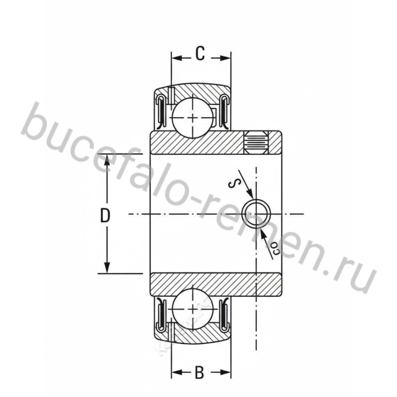 Фиксация на валу осуществляется с помощью двух стопорных винтов с шестигранной головкой, расположенных под углом 120° во внутреннем кольце. Наружное кольцо имеет цилиндрическую поверхность. Конструкция включает стальные наружное кольцо и внутреннее кольцо, удлинённое с одной стороны, шарики, полиамидный сепаратор и уплотнения, состоящие из двух шайб из оцинкованной листовой стали, направленных наружу и наклонённых вниз, между которыми находится промежуточный слой из материала NBR (каучук) или PTFE (пластик). Кромка уплотнения подвергается предварительной радиальной нагрузке, что повышает защиту от механических повреждений. На наружном кольце предусмотрены смазочные отверстия. Подшипник уже заполнен смазкой и допускает повторное смазывание во время эксплуатации. Рабочий температурный диапазон уплотнений варьируется от -20 до +100 °C, с кратковременным допуском до 120 °C.
