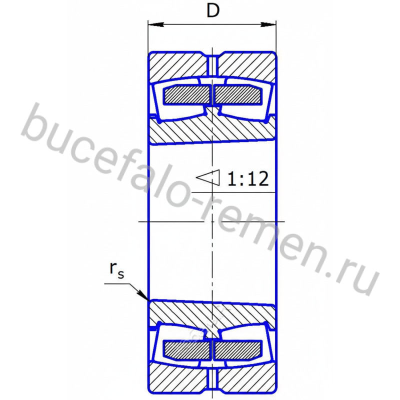 Подшипник роликовый радиальный сферический двухрядный 113526 ГОСТ. Неразъемный самоустанавливающийся, с коническим отверстием. Конструктивные особенности: массивное наружное кольцо, два стальных штампованных сепаратора оконного типа, внутреннее кольцо без бортов, плавающее направляющее кольцо между сферическими роликами. Наружное кольцо имеет кольцевую канавку с тремя смазочными отверстиями. Рабочий температурный диапазон: от -40 °C до +120 °C. Компенсирует осевые перекосы до 1,5 - 2 градусов.