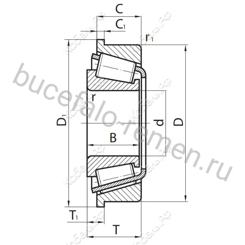 Разборная конструкция включает наружное кольцо с внутренним конусом и внутреннее двухбортовое кольцо с наружным конусом, предназначенные для конических роликов, которые фиксируются стальным штампованным сепаратором. Рабочий температурный диапазон составляет от -40 °C до +120 °C. Подшипник рассчитан на восприятие радиальных и осевых нагрузок в одном направлении. Грузоподъемность выше, чем у аналогичных моделей.