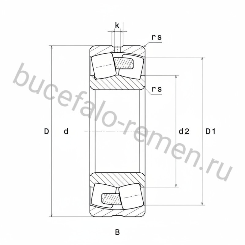 Двухрядный сферический роликовый радиальный подшипник от FBJ. Представляет собой неразъемный самоустанавливающийся элемент с увеличенным внутренним радиальным зазором класса С3. Включает массивное наружное кольцо, латунный сепаратор, обработанный механически, внутреннее кольцо с двумя бортами и сферические ролики. Наружный диаметр оснащён кольцевой канавкой и отверстиями для смазки. Работоспособен в диапазоне температур от -40 °C до +200 °C. Предназначен для компенсации осевых перекосов внутреннего кольца относительно наружного в пределах 1,5 - 2 градусов. Внутренняя геометрия спроектирована для снижения трения и тепловыделения.