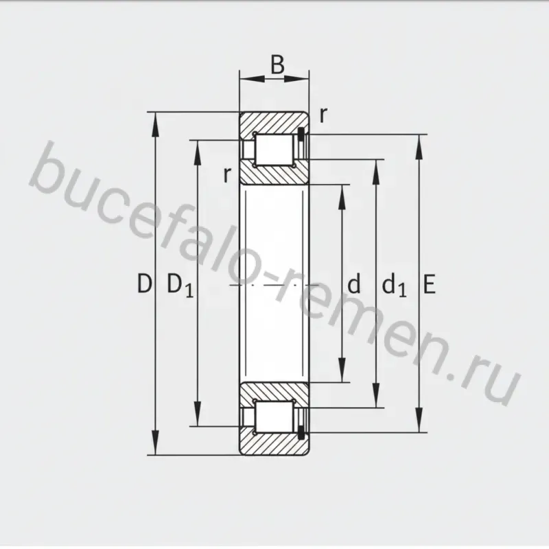 Радиальный роликовый подшипник 2612934 ГОСТ бессепараторный с цилиндрическими роликами.