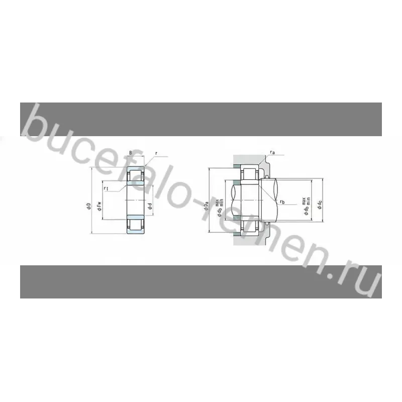 Средняя серия. Состоит из наружного и внутреннего колец, латунного сепаратора и роликов. Модификация с повышенной грузоподъемностью. Внутреннее кольцо не имеет бортов. Наружное кольцо имеет два борта. Воспринимает только радиальную нагрузку. Рабочий температурный режим от -30 °C до +90°C. Роликовые радиальные подшипники обладают значительно большей грузоподъемностью чем шариковые, но ограничены в скорости. Область применения - универсальная, где требуется повышенная грузоподъемность.