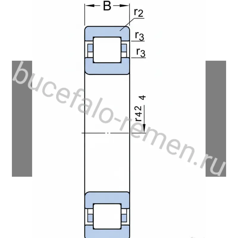 Однорядный радиальный роликовый подшипник FBJ с цилиндрическими роликами. Внутренний радиальный зазор увеличен до значения С3. Конструкция включает наружное кольцо с двумя направляющими бортами, внутреннее кольцо с одним направляющим и одним съёмным бортиком в виде свободного кольца, цилиндрические ролики и штампованный стальной сепаратор, обеспечивающий центрирование роликов. Рабочий температурный диапазон варьируется от -40 °C до +150 °C. Подшипник рассчитан на восприятие радиальной нагрузки и обеспечивает осевую фиксацию вала с двух сторон.