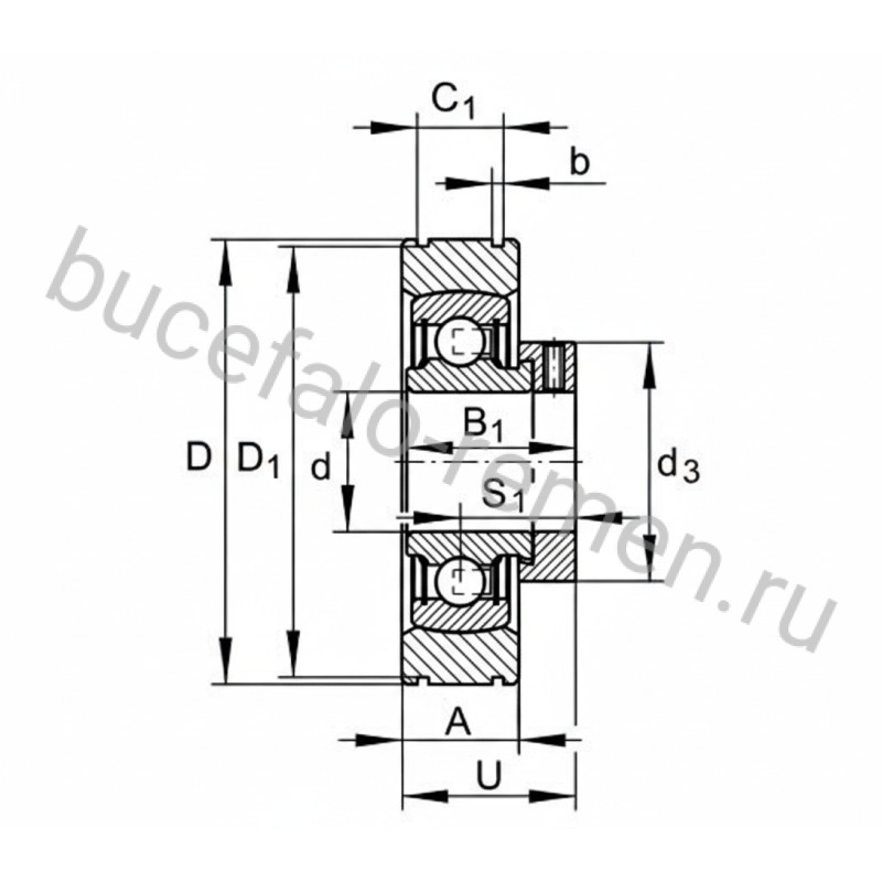 Радиальные шарикоподшипники данного типа поставляются в собранном виде с центральным стальным кольцом, которое компенсирует перекосы вала до ± 5 °. Центровочное кольцо покрыто Corrotect, что обеспечивает защиту от фреттинг-коррозии и благодаря кольцевым пазам делает его подходящим для конструкций из листового металла. Для крепления подшипника на валу предусмотрён поворот стопорного кольца в сторону вращения и дополнительное закрепление при помощи стопорного винта. Конструкция включает наружное кольцо и внутреннее кольцо с удлинением с одной стороны, шарики, полиамидный сепаратор, а также стандартные уплотнения. Уплотнения состоят из двух шайб из оцинкованной листовой стали с промежуточным слоем NBR (каучук). Кромка уплотнения натянута осевым усилием для защиты от механических повреждений, а внешняя шайба из листовой стали значительно выступает вниз к внутреннему кольцу. Подшипник смазан. Диапазон рабочих температур для уплотнений варьируется от -20 до +100 °C, с кратковременным допуском до 120 °C.