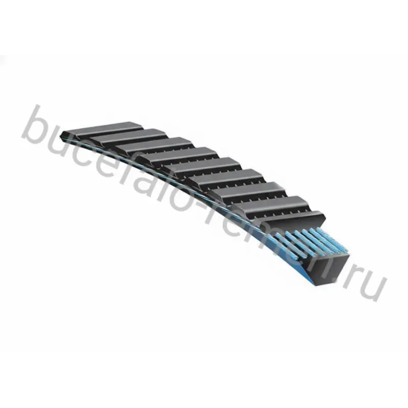 - Ребристая внешняя сторона придает ремню поперечную жесткость без увеличения изгибающих нагрузок.