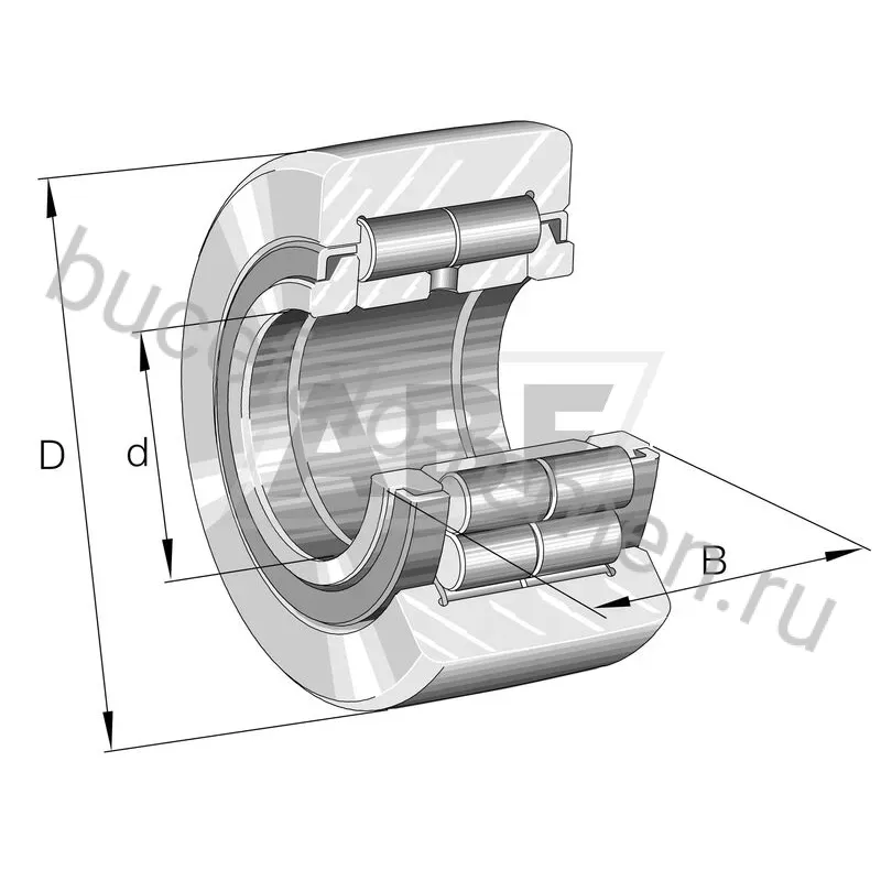 - Описание носителя:Опорные катки бугельного типа NUTR, комплект цилиндрических роликов с полным комплектом, с осевой направляющей, лабиринтные уплотнения с обеих сторон