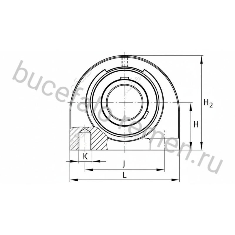 FBJ представляет шариковый корпусной подшипник с фиксацией через стопорные винты. Он предназначен для монтажа в корпус типа «PА». Крепление на валу осуществляется посредством двух винтов с шестигранной головкой, расположенных во внутреннем кольце под углом 120°. Наружное кольцо выполнено с сферической поверхностью. Конструкция включает стальные наружное и внутреннее кольца, внутреннее из которых удлинено с обеих сторон, шарики, полиамидный сепаратор, а также уплотнение в виде цельной шайбы из оцинкованной стали с вулканизированной кромкой из NBR, предварительно нагруженной радиально. Кроме того, предусмотрены маслоотражательные кольца из листовой стали с защитным покрытием. На наружном кольце расположены два стандартных смазочных отверстия. Рабочий температурный диапазон уплотнений составляет от -40 до +100 °C.